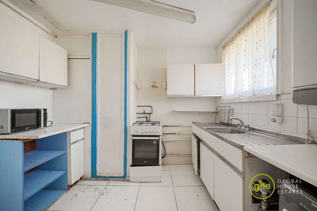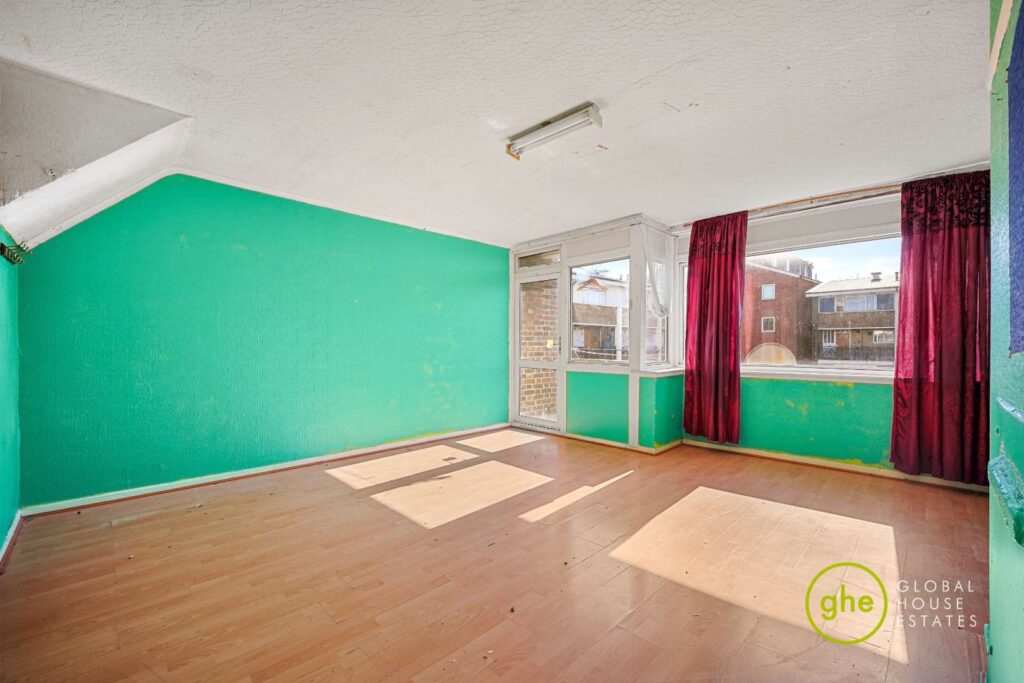 This three-bedroom split-level apartment is set within Rivet House, a purpose-built development, offering an excellent opportunity for buyers seeking a full refurbishment project.